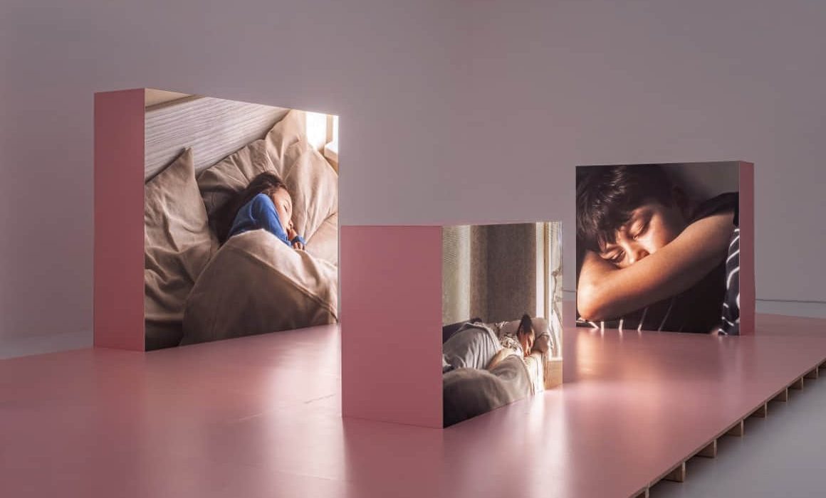 La tercera obra de la muestra, You Shouldn’t Have to See This (No deberías tener que ver esto, 2024) –reconocida con el Premio Curatorial de OFFSCREEN París– es una videoinstalación de seis canales que, marcada por el silencio, presenta a niños y niñas ucranianas mientras duermen.