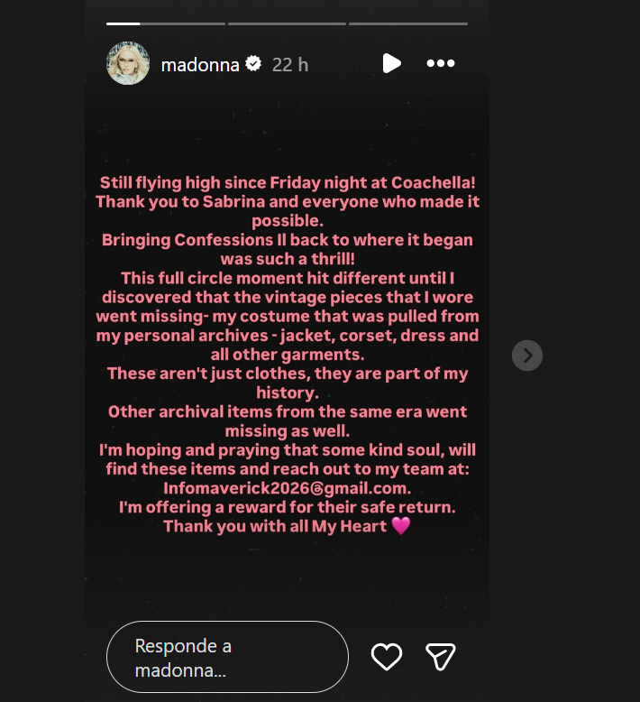 Denuncia Madonna desaparición de su vestuario tras su show en Coachella