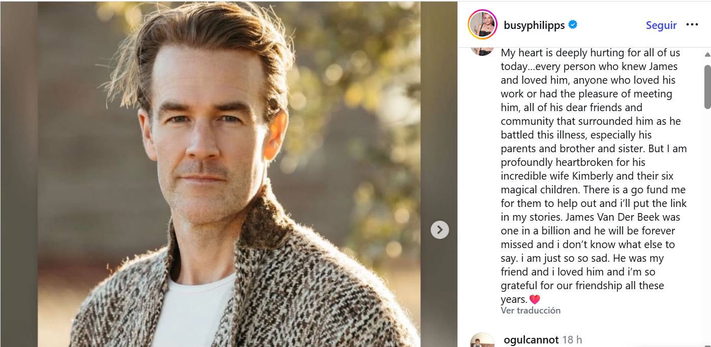 “Mi corazón duele profundamente por cada persona que conoció a James y le quiso. James Van Der Beek era uno entre mil millones y siempre se le echará de menos. Estoy tan, tan triste. Era mi amigo y le quería, y estoy muy agradecida por nuestra amistad todos estos años”.