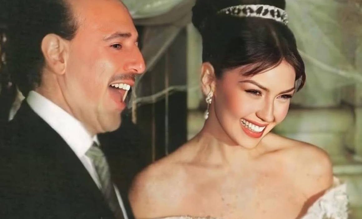 La boda de la intérprete, celebrada a inicios del milenio, tuvo amplia cobertura internacional. El vestido que utilizó fue diseñado por el mexicano Mitzy y se distinguió por su extensa cola y detalles bordados.