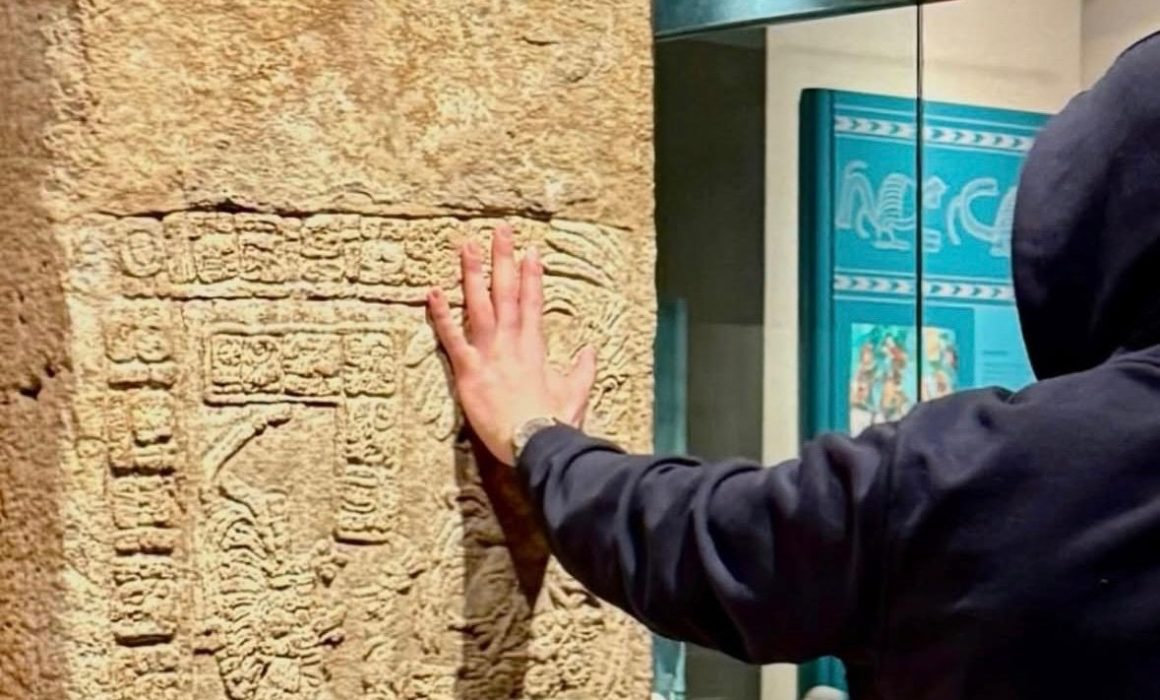 "Durante todo el recorrido se contó con presencia de custodia del MNA. Cuando el artista colocó la mano sobre la estela, personal de custodia del museo reiteró que no se podían tocar las piezas, a lo cual el músico la retiró”, destacó el INAH, en X.