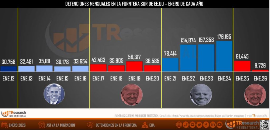 Bajan detenciones en la frontera México-EU en la segunda era Trump