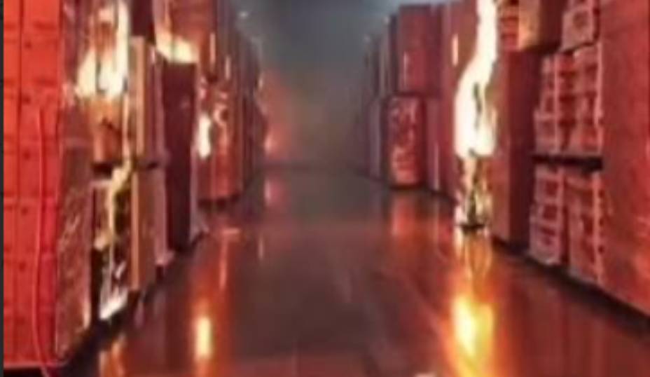 TRENTON, Nueva Jersey, EU, 8 de abril de 2026.- En redes sociales circula un video que muestra cómo se originó el incendio de seis alarmas dentro del almacén de Kimberly-Clark, de 1.2 millones de pies cuadrados en Ontario, California, ocurrido este martes 7 de abril. El audiovisual habría sido grabado por el mismo sospechoso de haber provocado el incendio.