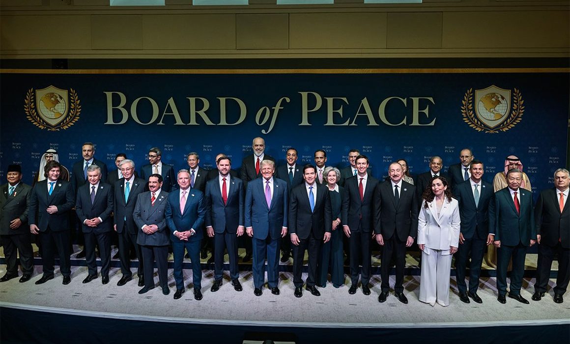 TRENTON, Nueva Jersey, EU, 19 de febrero de 2026.- El presidente de Estados Unidos, Donald Trump, se reunió este jueves con diversos líderes mundiales y fundadores del Consejo de Paz para la reunión inaugural en el Instituto de Paz, Donald J. Trump en Washington, DC.