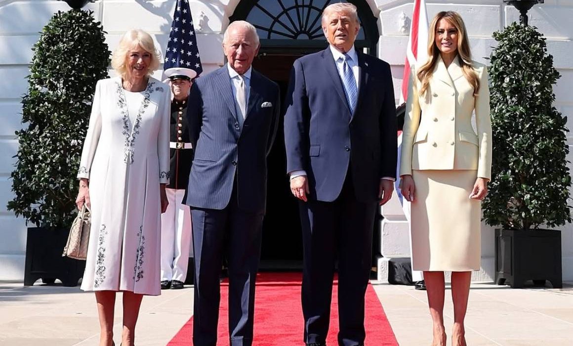 President Donald J. Trump and First Lady Melania Trump greet King Charles III and Queen Camilla for tea at the White House! 🇺🇸🇬🇧 pic.twitter.com/7tvVCtPecE