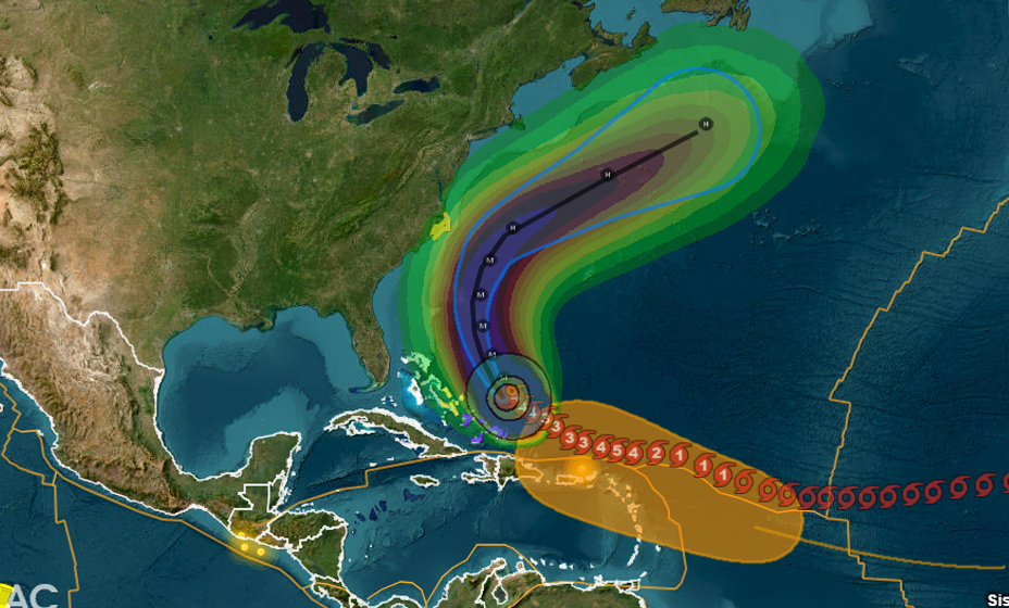 A las 17 horas de este lunes, el centro de Erin se ubicaba a unas 815 millas al sureste de Cape Hatteras. El sistema se desplaza hacia el noroeste a unas 10 mph, con vientos sostenidos de 140 mph y ráfagas más intensas.