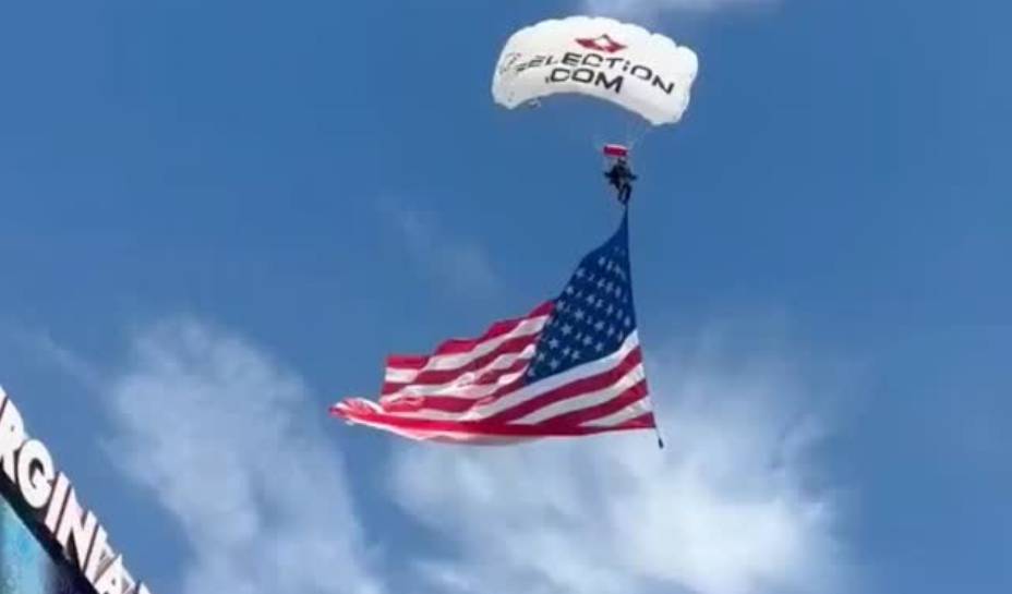El incidente ocurrió minutos antes del inicio del evento, cuando varios paracaidistas descendían al campo con banderas. Uno de ellos perdió la trayectoria, presuntamente por ráfagas de viento, y terminó estrellándose contra la estructura del tablero electrónico, donde quedó suspendido ante miles de asistentes.