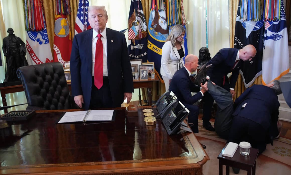 Se desmaya hombre al lado de Donald Trump durante conferencia