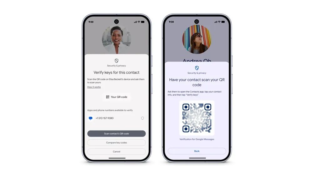En Google Messages, los enlaces sospechosos ahora generan alertas que impiden visitar sitios potencialmente peligrosos, mientras que Key Verifier permite confirmar la identidad de los contactos mediante códigos QR, garantizando que los mensajes cifrados lleguen a la persona correcta.