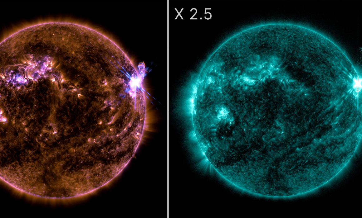 Los eventos alcanzaron picos a las 21:07 ET y a las 4:13 ET, respectivamente, y fueron clasificados como X2.4 y X2.5, entre las categorías más intensas del espectro. El Observatorio de Dinámica Solar (SDO) capturó imágenes de ambas erupciones.