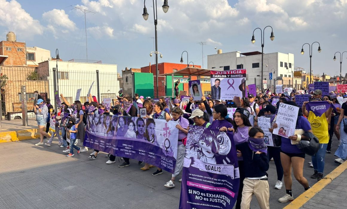 SAN LUIS POTOSÍ, México, 9 de marzo de 2026.- El sonido de los tambores comenzó a escucharse antes de que la marcha avanzara. Poco a poco, las calles del centro de San Luis Potosí se llenaron de mujeres que llegaban desde distintos puntos de la ciudad.