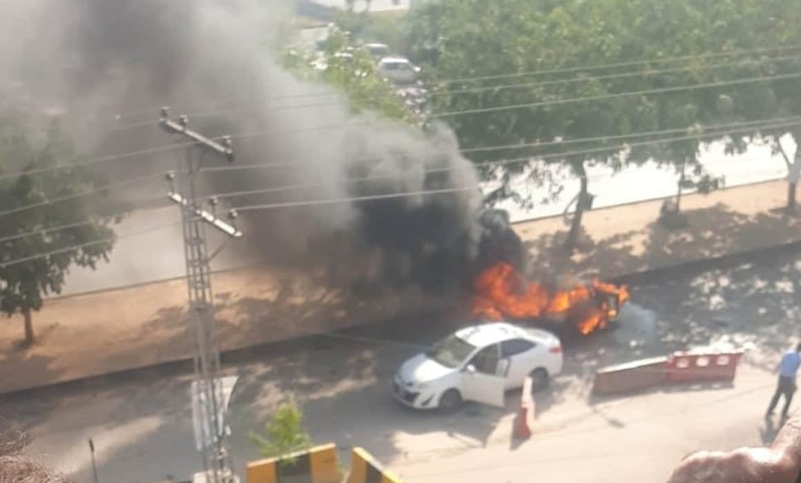 #Pakistan. #Surveillance video has emerged of a #suicidebomber blast in #Islamabad. The attacker blew himself up near a police car. Pakistan accuses #India. pic.twitter.com/NQu3MOd9Tk