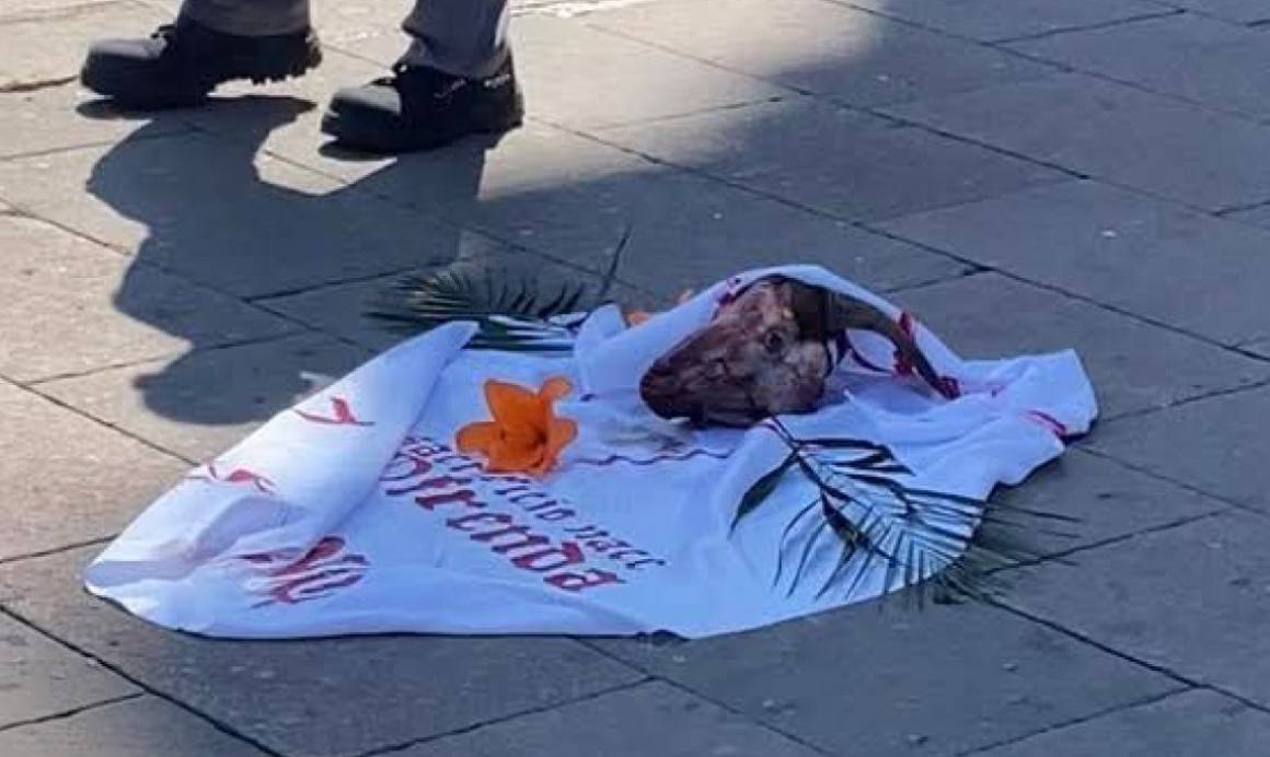 SAN LUIS POTOSÍ, México, 3 de abril de 2026.- La presencia de una cabeza de vaca en las inmediaciones del Santuario de Guadalupe, México, provocó movilización y desconcierto entre asistentes que acudían a las actividades de Viernes Santo en la capital potosina.