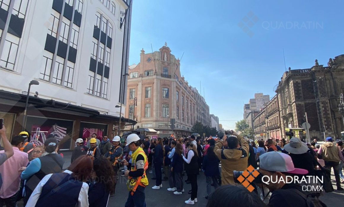 La mandataria capitalina atravesó la calle 20 de noviembre y en un ambiente de tranquilidad, la ciudadanía evacuó los edificios aledaños y se reunieron en un punto seguro al centro de la Plaza de la Constitución.