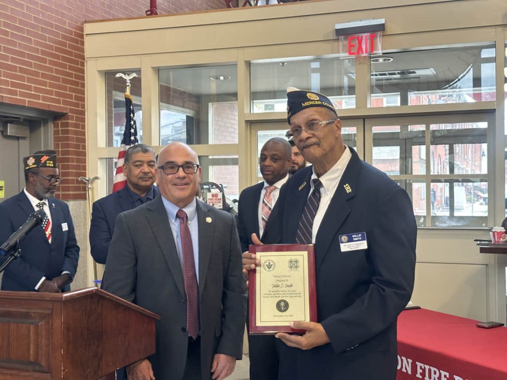 El evento se llevó a cabo en la Casa de Fuego del Departamento de Bomberos de Trenton, donde el director de Bomberos también rindió homenaje a los empleados municipales y ciudadanos veteranos, destacando el doble servicio que muchos de ellos han prestado, tanto al país como a la ciudad.