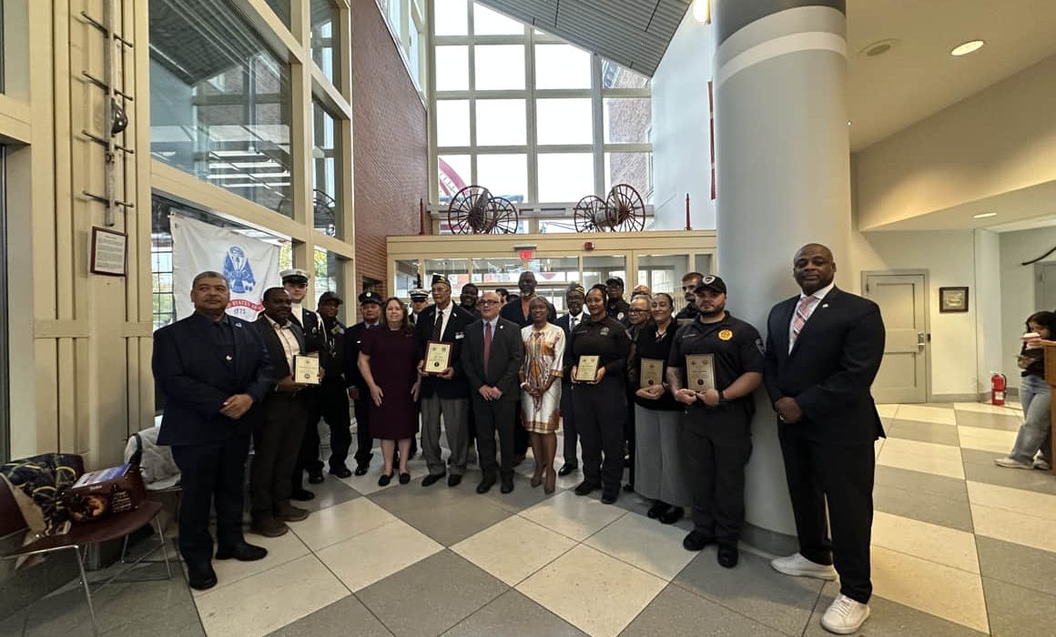 El evento se llevó a cabo en la Casa de Fuego del Departamento de Bomberos de Trenton, donde el director de Bomberos también rindió homenaje a los empleados municipales y ciudadanos veteranos, destacando el doble servicio que muchos de ellos han prestado, tanto al país como a la ciudad.