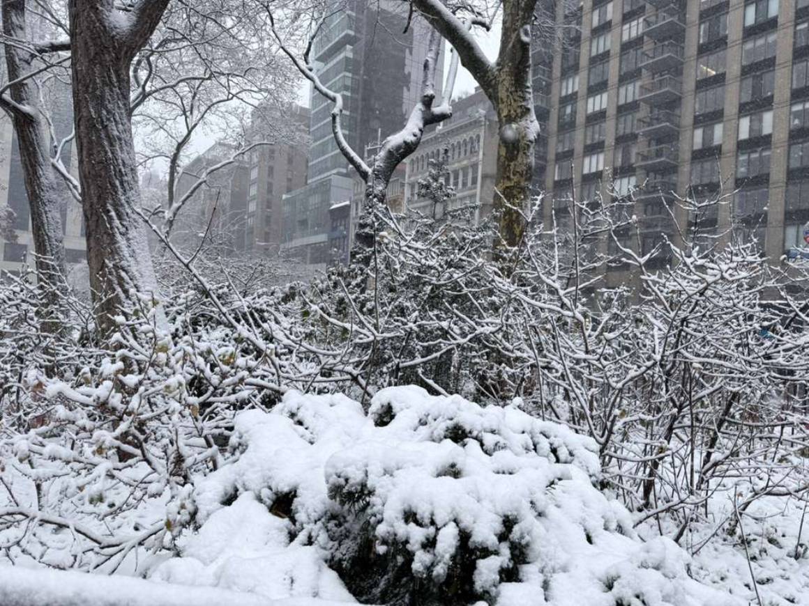 En Nueva York, la nieve comenzó a caer desde el sábado y continuó extendiéndose por la región hasta la mañana del domingo. Central Park, así como los aeropuertos de LaGuardia y JFK, reportaron acumulaciones.