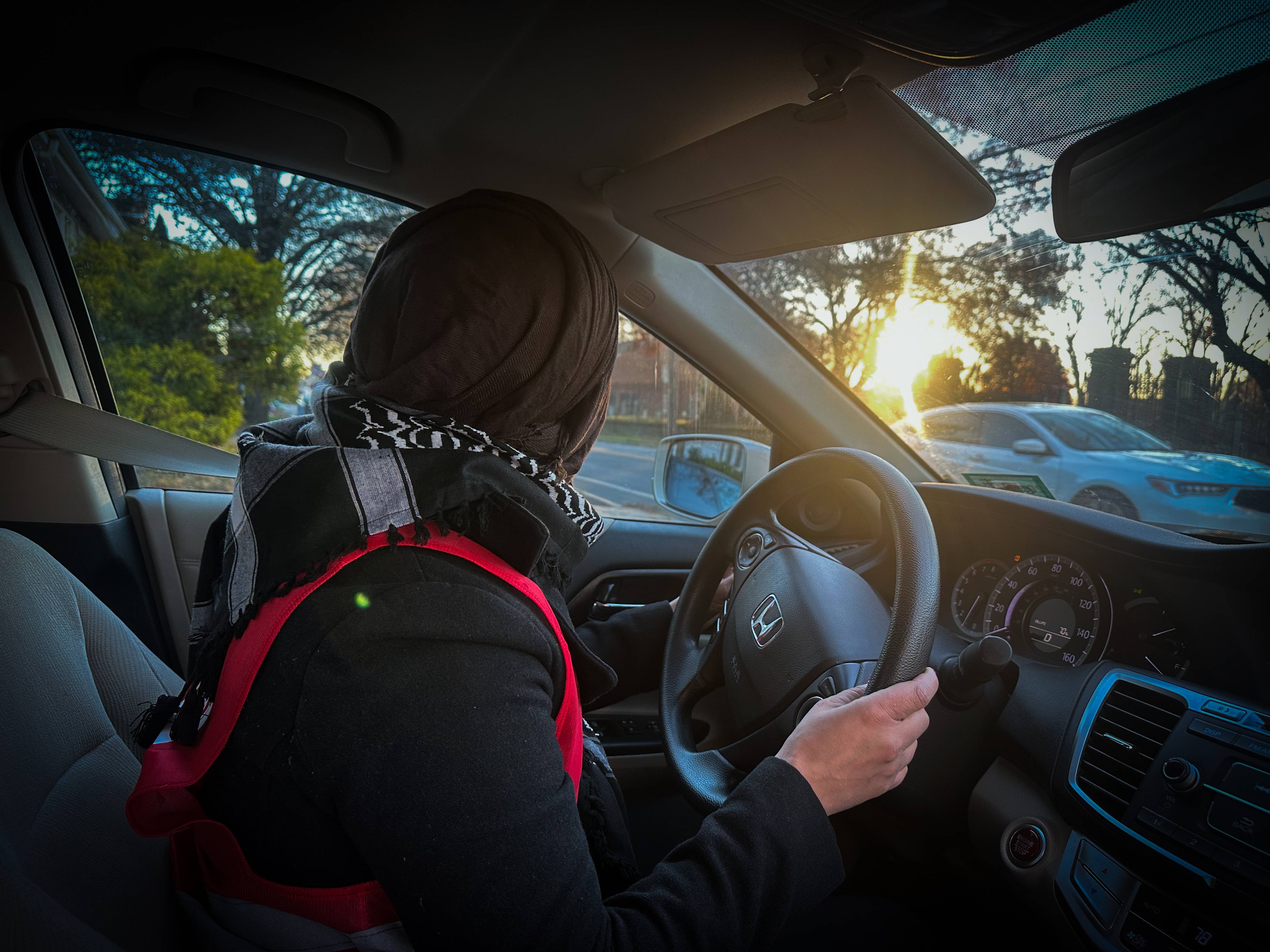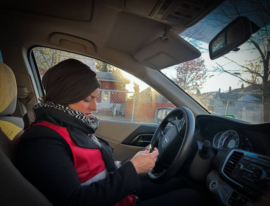 TRENTON, Nueva Jersey, EU, 23 de noviembre de 2025.- Antes del amanecer, Asma Elhuni sale de su casa, enciende el carro y empieza a recorrer las calles de Trenton, Nueva Jersey. Repite las mismas rutas por vecindarios de alta población inmigrante, siempre en busca de una sola cosa: la presencia de agentes del Servicio de Inmigración y Control de Aduanas (ICE).