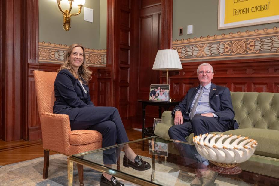 TRENTON, Nueva Jersey, EU, 6 de noviembre de 2025.- El gobernador de Nueva Jersey, Phil Murphy, se reunió con quien será su sucesora tras ganar las elecciones el pasado martes 4 de noviembre, Mikie Sherrill.
