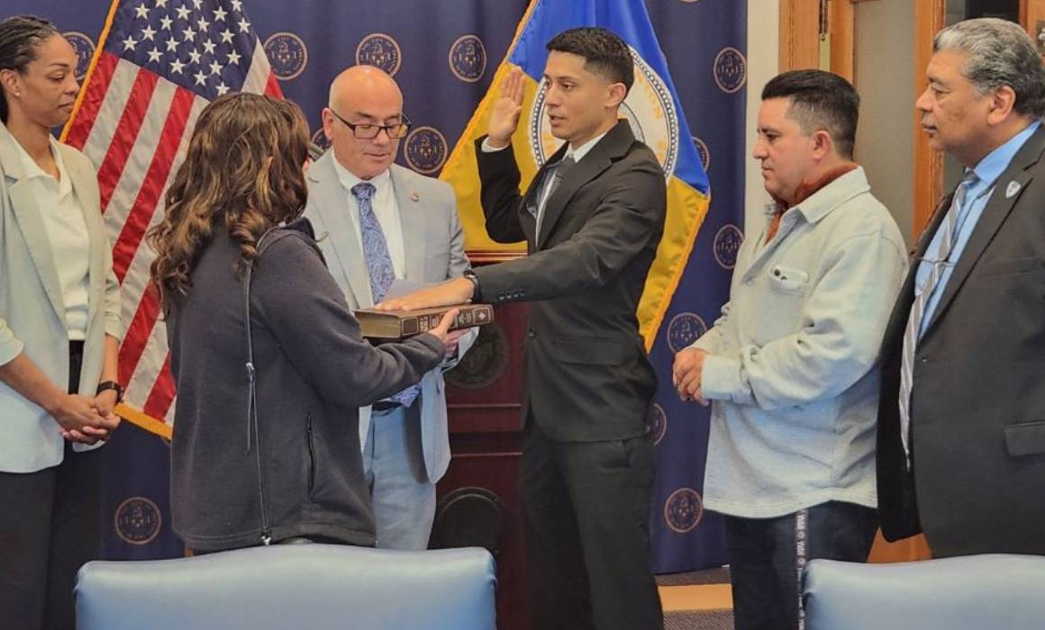 TRENTON, Nueva Jersey, EU, 10 de abril de 2026.- El Departamento de Policía de Trenton dio la bienvenida oficial a su nuevo integrante, el patrullero Kevin Castillo‑García, durante una ceremonia en la que estuvo acompañado por familiares, amigos y autoridades municipales, entre ellas el alcalde Reed Gusciora, el director de Policía Steve Wilson y la detective capitán Yolanda Ward.