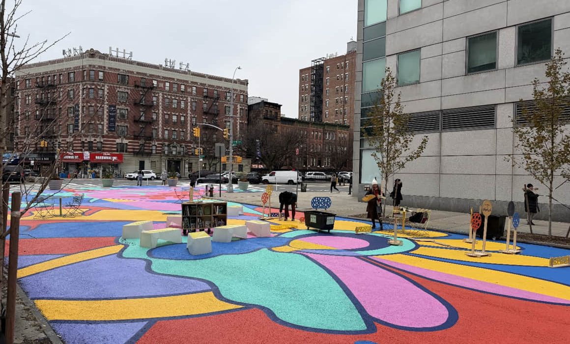 Abren nueva plaza peatonal en Washington Heights con mural en el asfalto