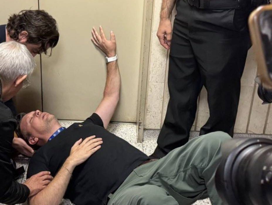 Un video del incidente muestra a los agentes gritando “¡Fuera del maldito ascensor!” antes de obligar a los reporteros a retroceder.