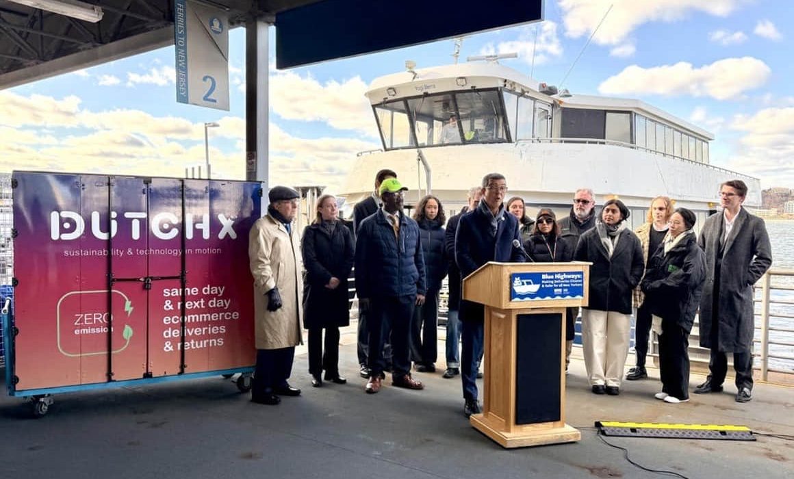 NUEVA YORK, EU, 11 de diciembre de 2025.- El comisionado del Departamento de Transporte de la Ciudad de Nueva York (NYC DOT), Ydanis Rodriguez, el presidente de la Corporación de Desarrollo Económico de la Ciudad de Nueva York (NYCEDC), Andrew Kimball, NY Waterway y DutchX anunciaron la puesta en marcha de un proyecto piloto de transporte marítimo de mercancías entre el Muelle 79 de Manhattan y la Terminal Marítima de Brooklyn (BMT) como parte del programa Blue Highways de la Ciudad de Nueva York.