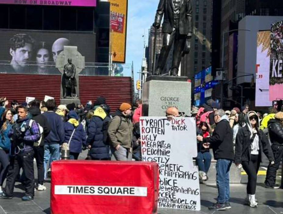 TRENTON, Nueva Jersey, EU, 28 de marzo de 2026.- Manifestantes empezaron a congregarse este sábado en Nueva York para la jornada nacional de protestas No Kings, convocada en todo el país contra las políticas del presidente Donald Trump, el alto costo de vida y la guerra en Irán.