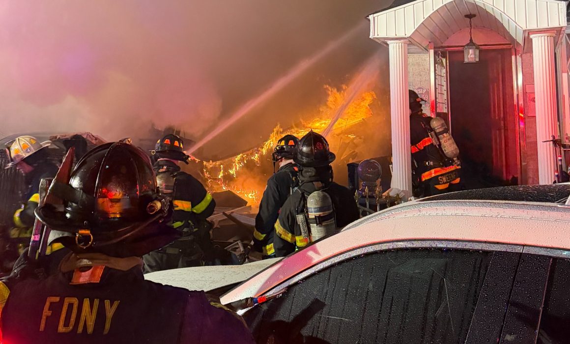 La casa, ubicada en la calle 130, estalló en llamas mientras los oficiales buscaban al presunto agresor. De acuerdo con el subjefe del NYPD, Christopher McIntosh, un familiar de la víctima alertó que el hombre había llegado ebrio, armado y que dentro del hogar se percibía olor a gas.