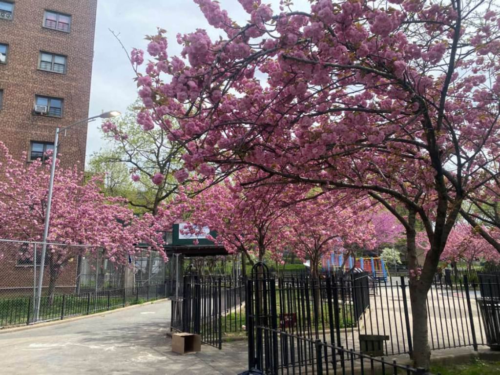“Dependiendo de si las temperaturas alcanzan entre 70 a 80 °F, los cerezos pueden producir una gran cantidad de flores. Mientras el clima se mantenga agradable y constante, habrá más flores para observar”, comenta Hakim Jeffrey, quien también organiza las huertas comunitarias de Astoria, en donde todo el trabajo es voluntario.