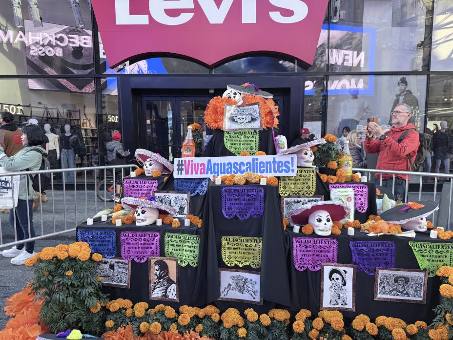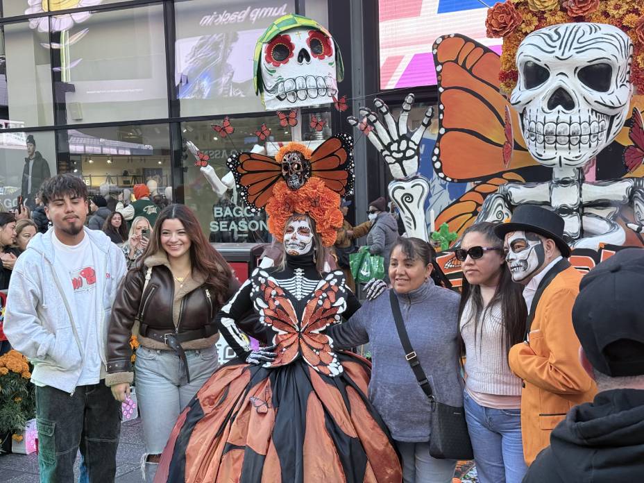 Times Square, reconocido por su bullicio y sus pantallas luminosas, se transformó en un espacio de encuentro cultural. La celebración incluyó música tradicional, gastronomía mexicana, flores de cempasúchil y altares dedicados a los difuntos.