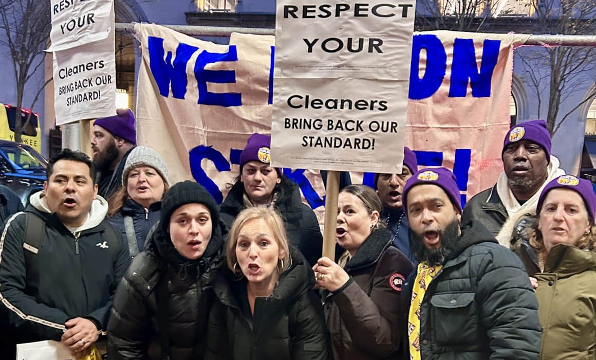 Mantienen huelga trabajadores de limpieza de NY por recorte salarial