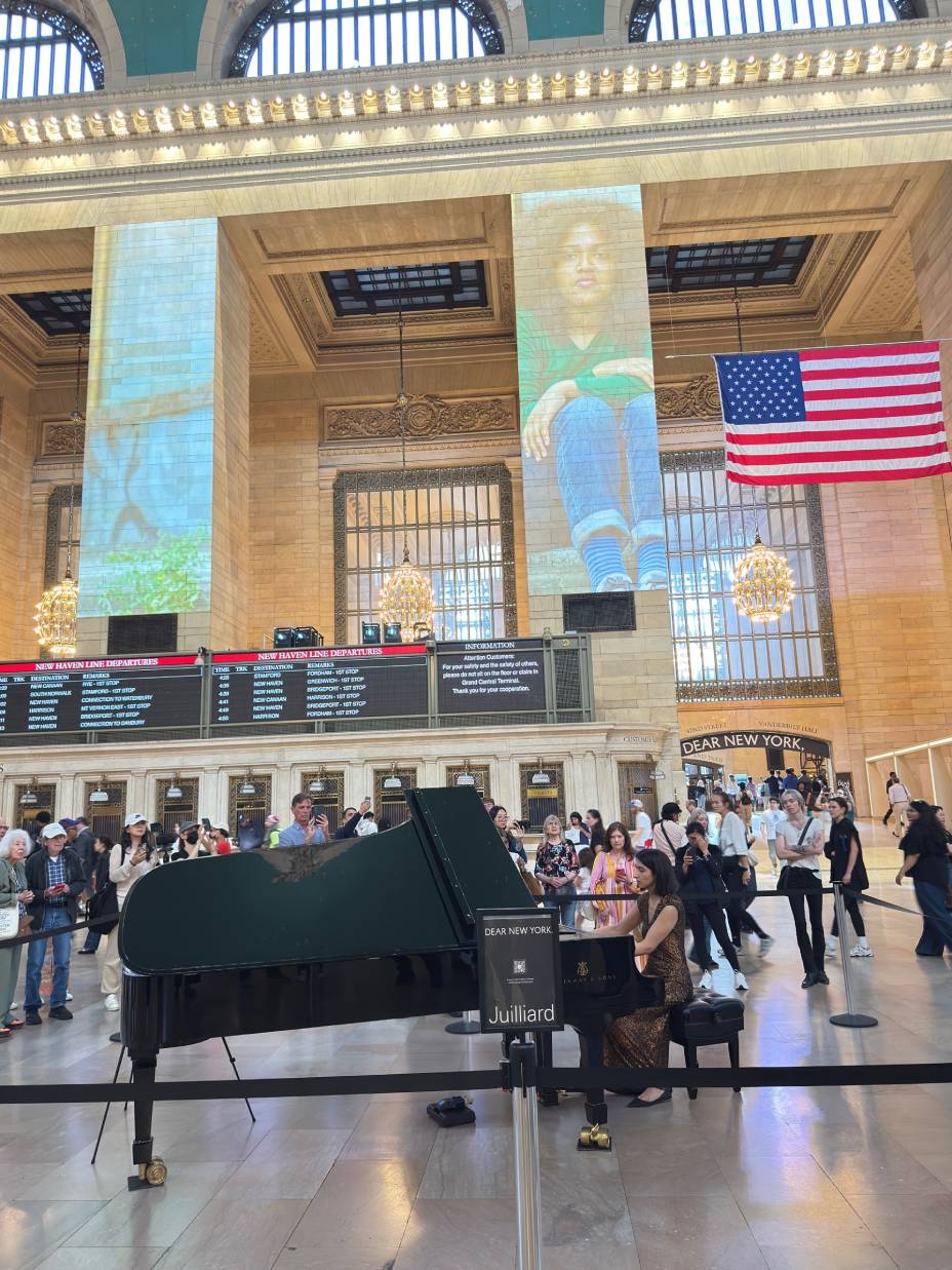 Dentro de la experiencia inmersiva Dear New York, Juilliard aporta el componente sonoro, la escuela colabora con más de 100 horas de música que acompañan las proyecciones en el Main Concourse, estudiantes, profesores y exalumnos interpretan piezas en piano y estilos que incluyen música clásica, jazz y contemporánea, llenando el espacio con una dimensión auditiva que complementa las imágenes y relatos visuales.