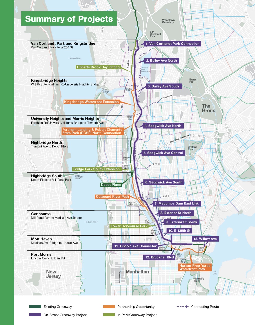 Publica NYC DOT plan del Corredor Verde del Río Harlem