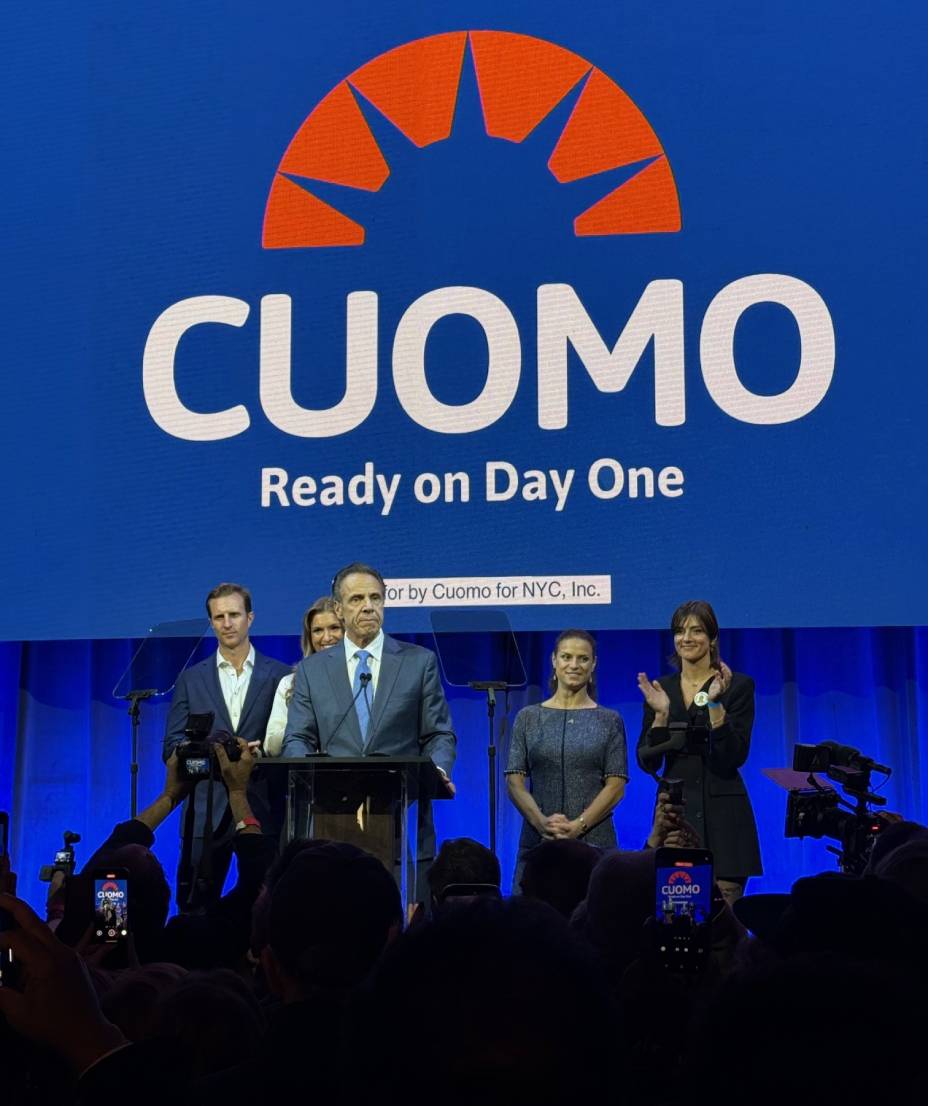 Después de unos minutos, Cuomo se subió al escenario acompañado por parte de su equipo, integrantes de su familia y sus hijas, quienes lo rodearon mientras agradecía a la audiencia. Con un tono firme y pausado, reconoció la derrota, felicitó a su adversario y pidió iniciar el proceso de transición.