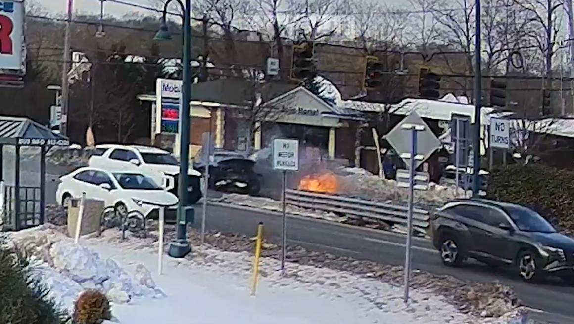 Rescata agente de NYPD a conductor atrapado en auto en llamas