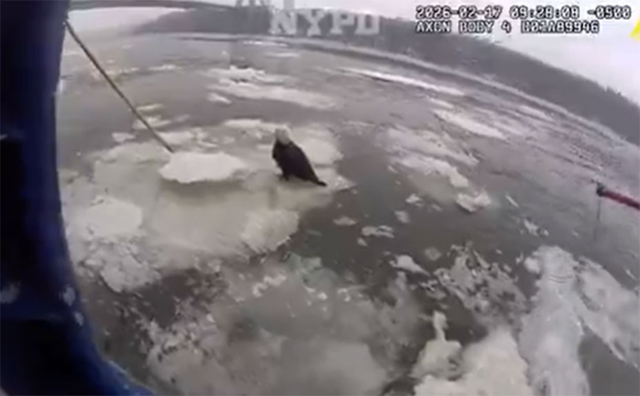 Rescatan águila calva herida en las congeladas aguas del río Hudson