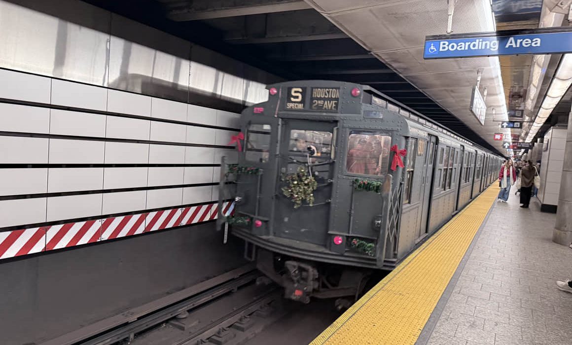 MANHATTAN, Nueva York, EU, 7 de diciembre de 2025.- Viajar en el tiempo es posible en Nueva York, gracias al Tren de la nostalgia que cada año recorre las rutas de las líneas F y Q, durante todos los domingos de diciembre, para que los pasajeros disfruten de una experiencia única, volver a la Gran Manzana de 1930.