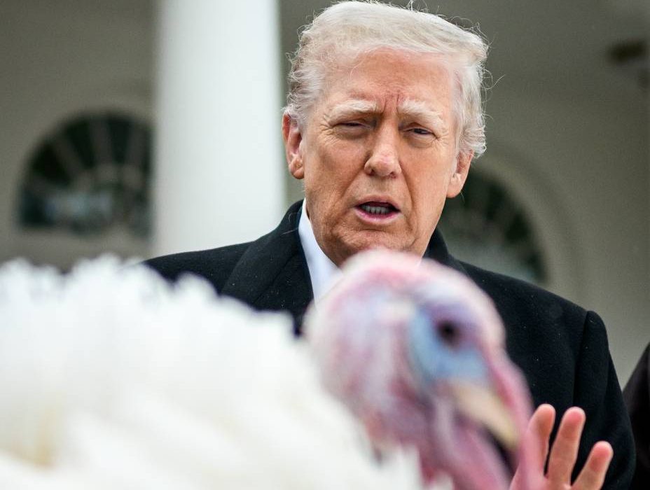 TRENTON, Nueva Jersey, EU, 25 de noviembre de 2025.- En la Rosaleda de la Casa Blanca, el presidente de Estados Unidos, Donald Trump, acompañado por la primera dama Melania, cumplió con la tradición de indultar a dos pavos en vísperas del Día de Acción de Gracias.