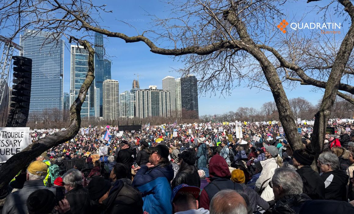 ACAPULCO, México, 28 de marzo de 2026.- Migrantes mexicanos marchan en Chicago, Estados Unidos contra la política migratoria del presidente Donald Trump y, contra las acciones del Servicio de Inmigración y Control de Aduanas de ese país en la marcha No Kings.