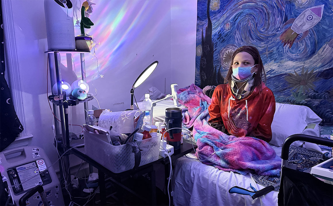 QUEENS, Nueva York, EU, 24 de enero de 2026.– En una posición corporal continua, con las rodillas dobladas, conectada a una máquina de oxígeno y con una mesa llena de medicamentos para calmar sus dolores y síntomas diarios, permanece Arlen Daza en una habitación en Queens. Hace ocho años, a esta joven venezolana le diagnosticaron una enfermedad rara: el síndrome de Ehlers-Danlos; sin embargo, sus ganas de seguir adelante y su fe en Dios no la han dejado rendirse ante su situación.