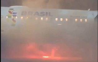 Evacúan pasajeros de avión en Sao Paulo tras incendio antes del despegue