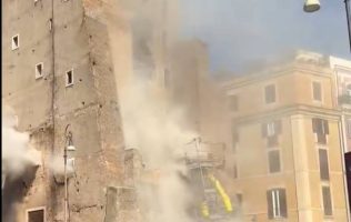 Rescatan a obreros tras derrumbe de torre medieval en el centro de Roma