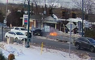 Rescata agente de NYPD a conductor atrapado en auto en llamas