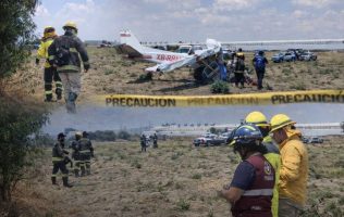 Mueren 3 personas tras desplome de avioneta en campos de Puebla, México