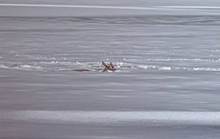 El ciervo luchaba por mantenerse a flote en el agua helada