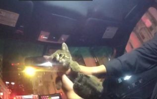 Rescata NYPD a gatito atrapado en un camión y oficial termina adoptándolo